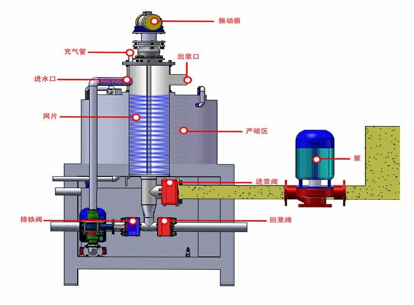 油冷式電磁漿料除鐵機(jī)適用于金屬礦粗選、非金屬礦提純。石英、長石、高嶺土等非金屬礦物的提純除雜。其他行業(yè):鋼鐵廠、發(fā)電廠的廢水處理。